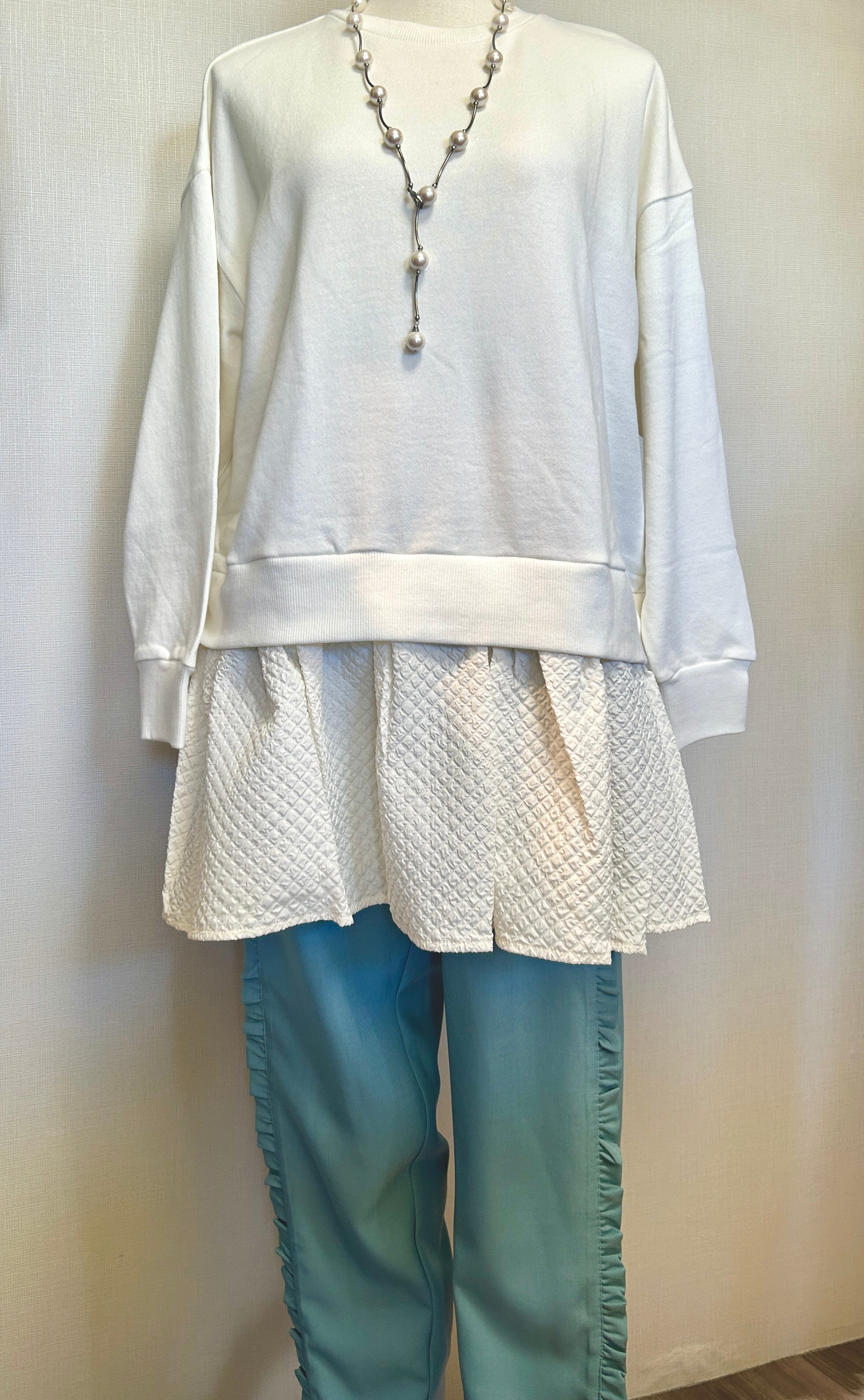 軽やかなへプラムプルオーバーと可愛らしいサイドフリルパンツのコンビネーションは、あなたのスタイルに華やかさをプラスします!