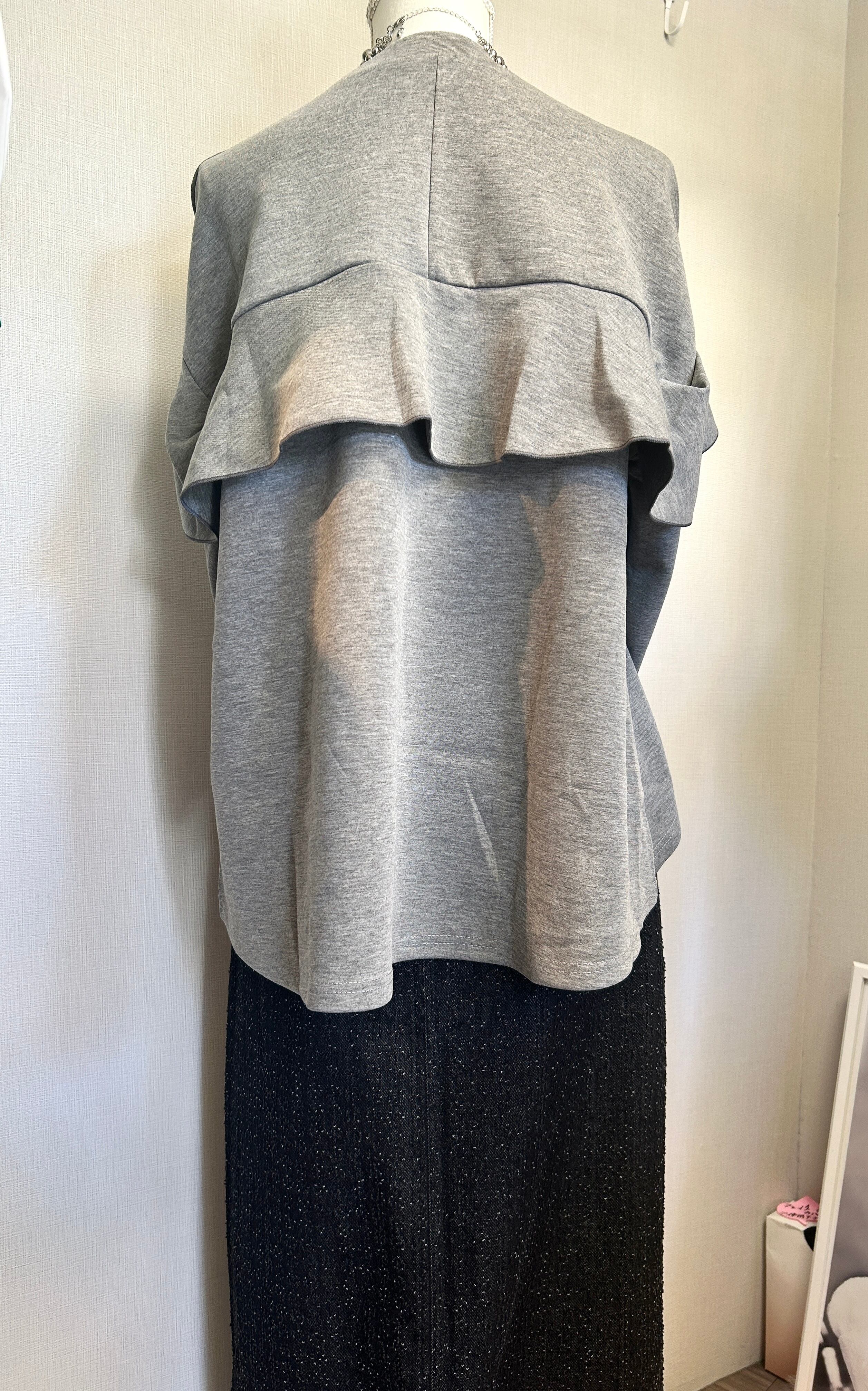 ボンディング素材のフリル切替トップスは、ふんわりとしたフリルが特徴的で、女性らしさをしっかりと感じさせます。軽やかな素材感で、リラックスした着心地が楽しめ、カジュアルからエレガントまで様々なシーンで活躍する一枚です。