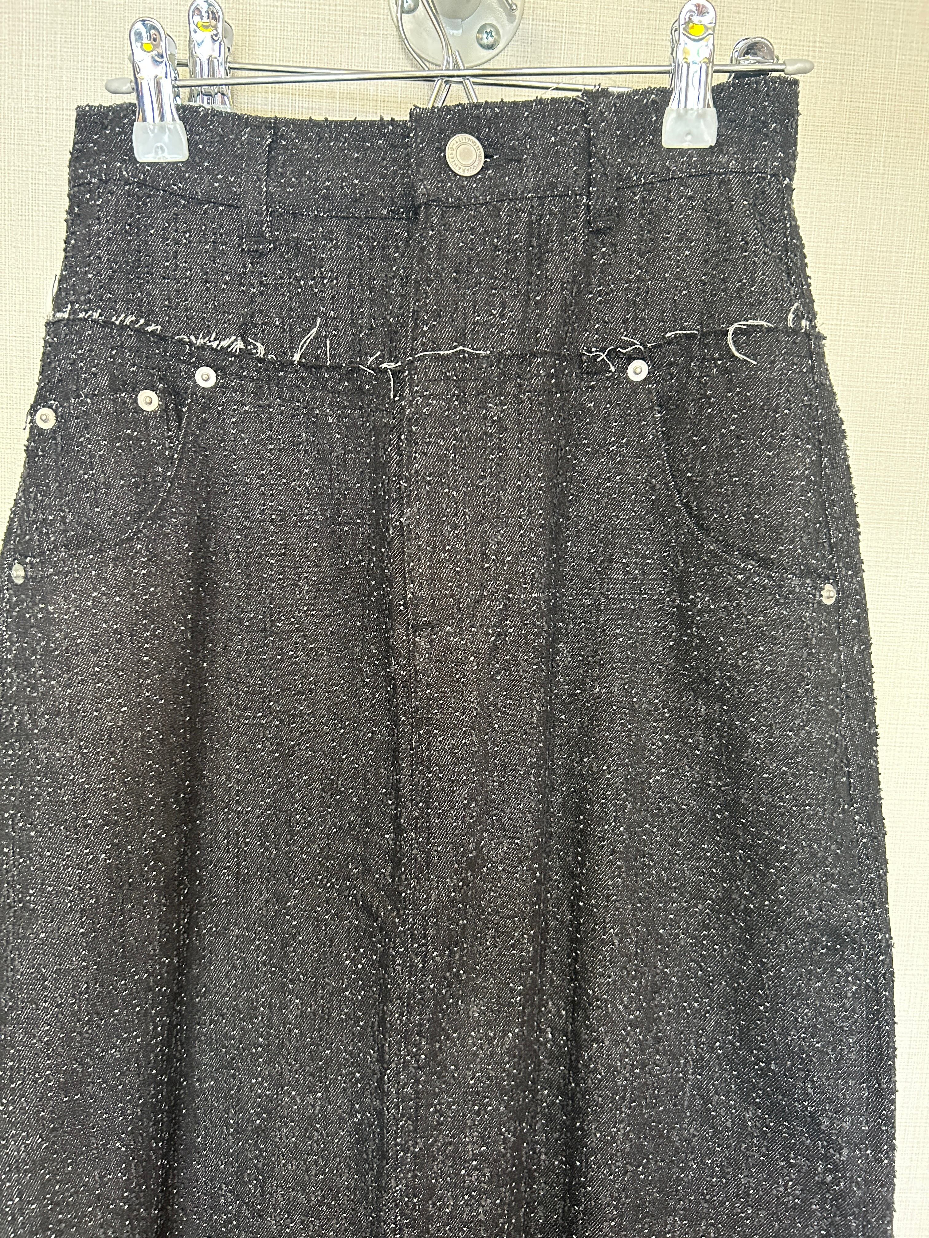 デニムスカートは、自然なクラッシュ加工が施されており、ウエスト切り替えデザインですっきり見えが叶う優秀アイテム◎